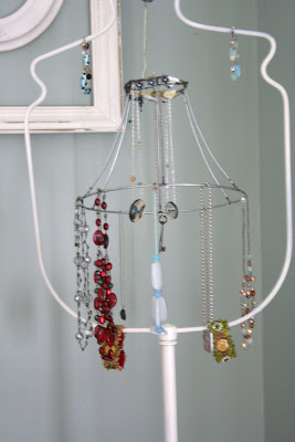 You can use a vintage lampshade without the shade for any number of things. I have another one, only larger that i have hanging over my desk and from it hangs bits and pieces of things that inspire me.