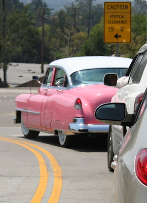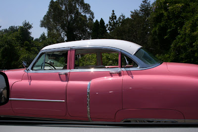 I was in Cali last week and we were driving down the 101 toward Santa Barbara when BEHOLD, a pink car up ahead!