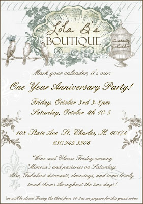 Thank you Sara, for busily preparing this for me! I am so excited that we are going to be celebrating our One year anniversary, and can’t wait for you to join us! So far we have Revamp Boutique, Le Papiers, Eliwill, and Matilda Jane coming thru-out the two days, setting up and showing off their lovely wares as well. What fun!