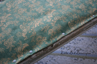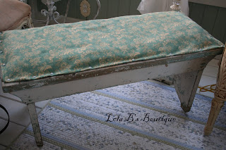 I love old benches, and this one was in need of some TLC. I found the perfect fabric to adorn the top and that way it could be used inside, and very useable to sit on.