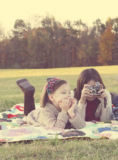 my neighbors vintage camera…used our vintage quilt…and away