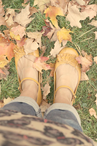 Love your shoes today! They match so nicely with the autumn leaves.