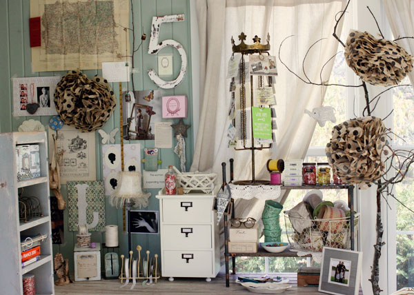 Kasey, it looks fabulous! LOVE the branches with flowers hanging from them. What a fabulous studio space~