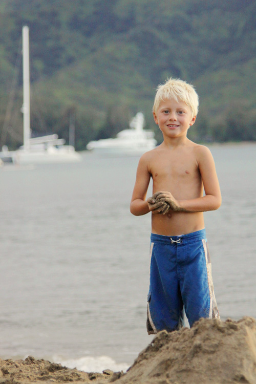 The boys arrived……not long after we had set up camp……and bryan took mason out into Hanalei Bay before heading back.
