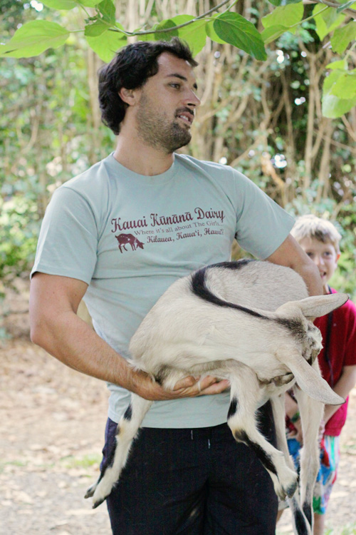 Kunana Dairy Farm has the best Lilikoi/passion fruit Chevre ever! Whenever we are in Kauai, we are in that stampede at farmers market trying to get our hands on some-yummy with Wheat Thins! We’ve always thought about taking that tour. Sounds like you had fun. Love the picture of you holding the goat! You’re living my dream.