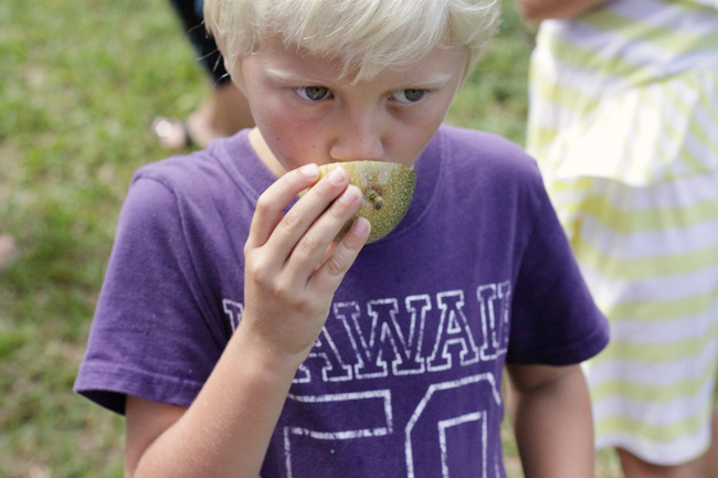 what you don’t know is that Lola doesn’t eat fruit….at all….or oatmeal…or actually…anything that might even have the smallest bit of healthy in it…so it was a true miracle from up above that she ate an oatmeal cookie and tasted some of the fruit from the tour. At least she told me she tasted the fruit…i just happen to only have photos of the boys tasting the fruit.