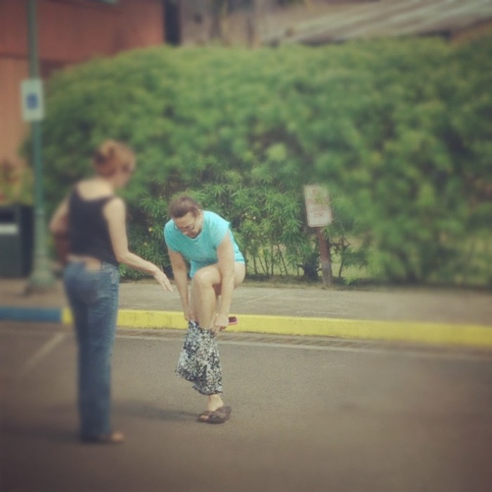 I love that the women changing in the parking lot has her a$$ hanging out for the world to see but doesn’t want her feet to touch the dirty ground. thanks for the laugh. Love your blog…check in everyday to see what’s up with you (not too stockerish I hope)…lol.