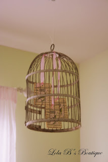 { We found a petite vintage birdcage at the Flea market, and adorned the inside with bird tags}