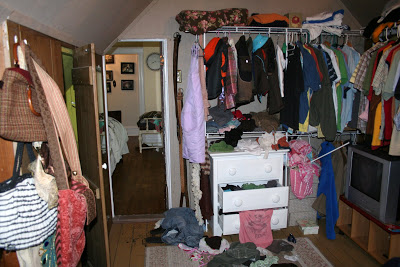 I can find anything, mind you. I know where the clothes are that need to go to the dry cleaners, I know where my bathing suit hides, but really, It’s a disaster.