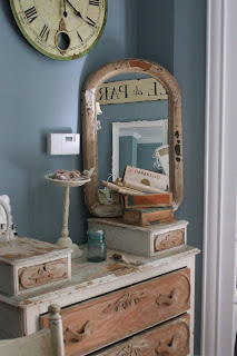 So, here is my find for the week, and it sits in my dining room on another frenchy, chippy, layered painted dresser.