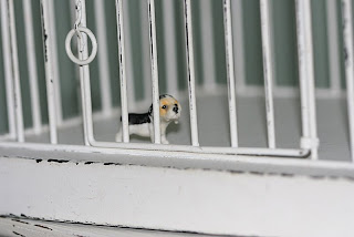 One would never see the puppy in my birdcage, but alas, there he is, and there is stays.